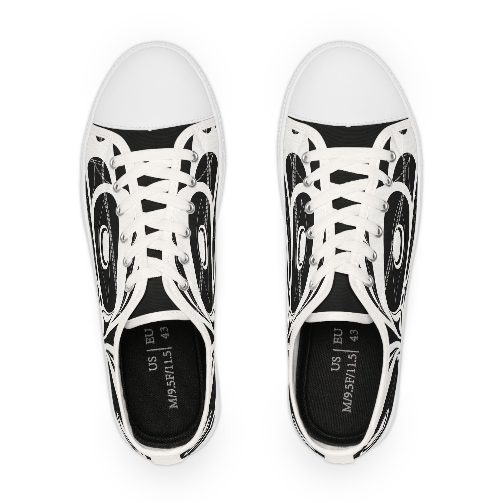 Men's Black Low Top shoes with White Wolf design by Joshua Watts